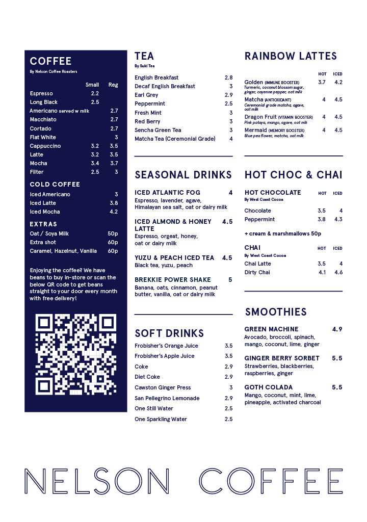The highlight of the menu is undoubtedly the specialty coffee, roasted with precision to bring out a rich, full-bodied flavor. Whether you opt for a classic flat white or venture into more adventurous drinks like their unique nitro cold brew, each cup is crafted with care. The beans are ethically sourced, ensuring a sustainable coffee experience that appeals to environmentally conscious consumers. In addition to coffee, Nelson Coffee also offers a selection of teas, freshly baked pastries, and light bites like sandwiches and cakes, perfect for a relaxing afternoon.